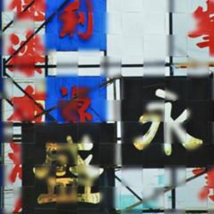 This piece is a hand-woven image, created by cutting and slicing photographs into strips and weaving them together to form a new reality of sharp and blurred focus.