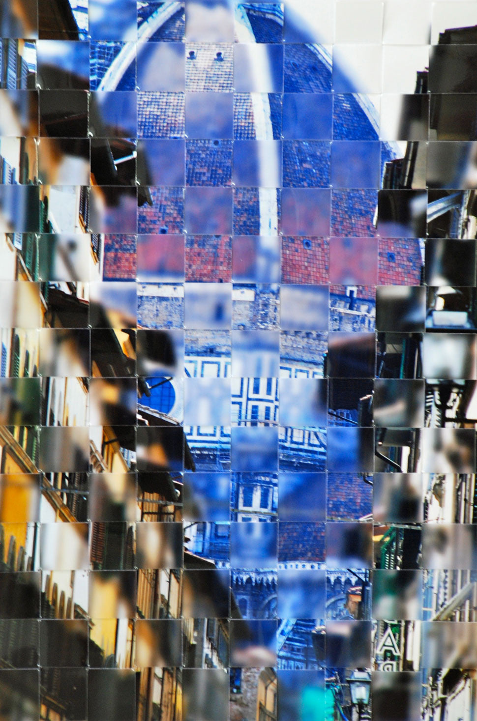 This piece is a hand-woven image, created by cutting and slicing photographs into strips and weaving them together to form a new reality of sharp and blurred focus.